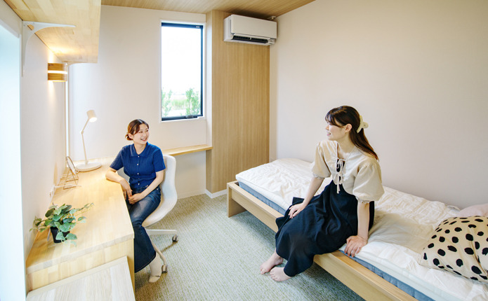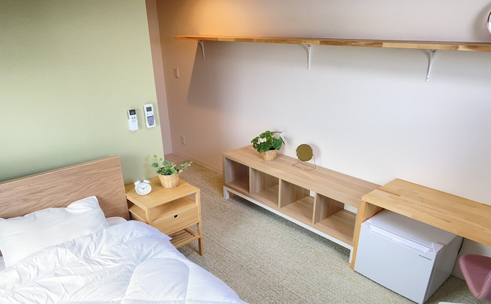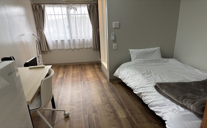 男性限定の相部屋宿舎です。全室に机、冷蔵庫、シャワールーム(共同)も完備。